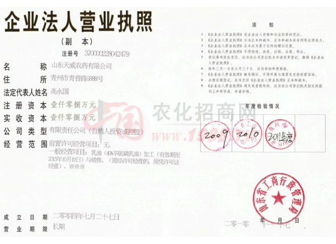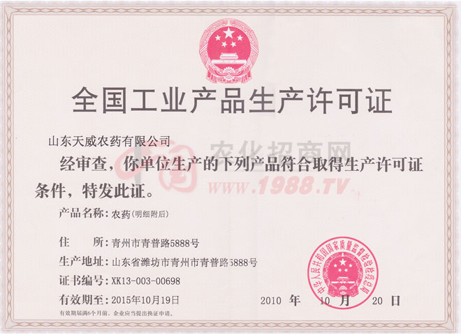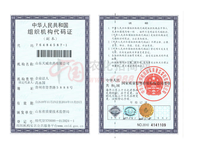 山東天威農(nóng)藥有限公司和青州市奧諾農(nóng)化有限公司是國家發(fā)改委、農(nóng)業(yè)部農(nóng)藥、肥料定點生產(chǎn)企業(yè);是國家農(nóng)業(yè)部農(nóng)藥檢定所農(nóng)藥科學(xué)與管理理事單位。