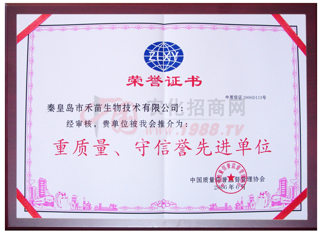 2006年禾苗公司被評(píng)為“重質(zhì)量、守信譽(yù)先進(jìn)單位”;