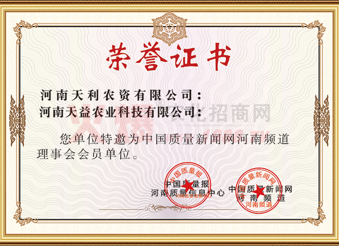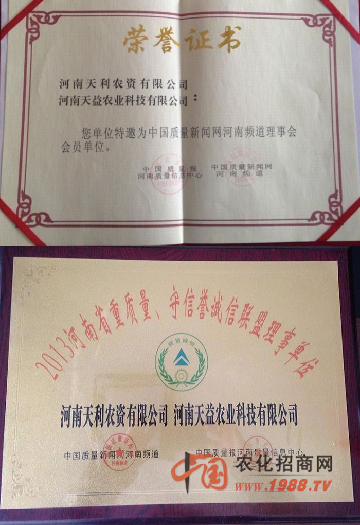 河南天利農(nóng)資有限公司為更好拓展市場(chǎng)和適應(yīng)市場(chǎng)發(fā)展趨勢(shì),2013年9月注冊(cè)分公司“河南天益農(nóng)業(yè)科技有限公司”注冊(cè)資金為2000萬(wàn)元,涉及行業(yè):農(nóng)業(yè)技術(shù)服務(wù)、開(kāi)發(fā);化肥;種子;貨物進(jìn)出口業(yè)務(wù)。不僅讓更多農(nóng)民朋友乃至東南亞各國(guó)的農(nóng)民朋友用到河南天利農(nóng)的增產(chǎn)系列產(chǎn)品,天利農(nóng)秉著服務(wù)三農(nóng),造福全世界農(nóng)民之宗旨,不斷打造出更好更省心更適合農(nóng)民的好農(nóng)藥。2013年河南天利農(nóng)資有限公司被國(guó)家輕工業(yè)部評(píng)為《品牌》;河南質(zhì)量監(jiān)督局評(píng)為《重質(zhì)量守信譽(yù)企業(yè)》;由河南科技報(bào)社為代表的八家單位評(píng)為《河南省科技創(chuàng)新具影響力企業(yè)》;