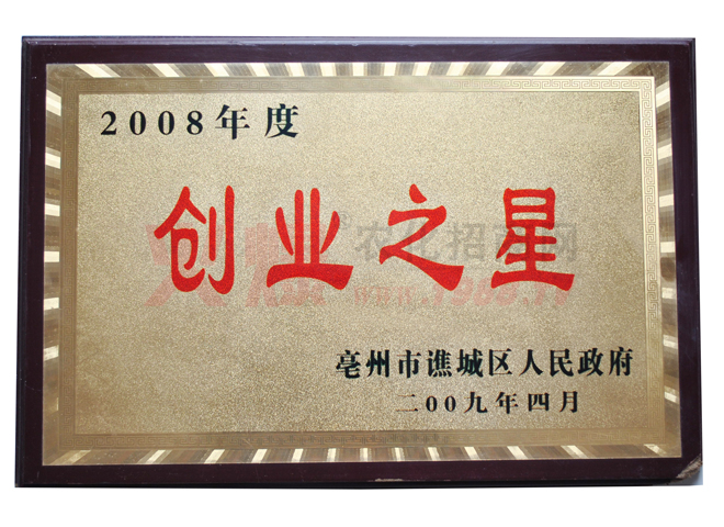公司董事長牛田野女士被授予2010年亳州市“十大創(chuàng)業(yè)之星”、2011年被市政府授予“十大杰出青年”,是亳州市第二、三屆人大代表。