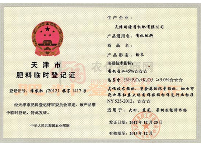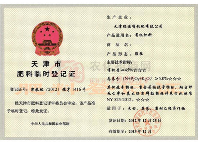 本公司通過技術(shù)研發(fā)和對多種農(nóng)作物進(jìn)行實(shí)踐,開發(fā)出了瑞遠(yuǎn)牌有機(jī)肥料,上市前經(jīng)過為期18個(gè)月,涉及京津、河北省保定、邯鄲、定州、山東省壽光、陜西省渭南等地區(qū),試用農(nóng)戶達(dá)200多戶,全部達(dá)到增產(chǎn)增收,減少病蟲害的試驗(yàn)?zāi)康。瑞源有機(jī)肥為有機(jī)食品、綠色食品、無公害食品生產(chǎn)提供優(yōu)質(zhì)高效及多種農(nóng)作物所需藥的營養(yǎng)元素,為我國農(nóng)業(yè)加快有機(jī)肥料的快速可持續(xù)發(fā)展及促進(jìn)農(nóng)業(yè)生態(tài)良性循環(huán)和有機(jī)肥料的推廣起到一定作用。