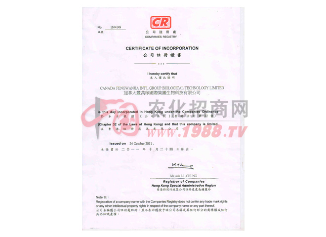 • 公司注冊(cè)證書(shū)公司注冊(cè)證書(shū)