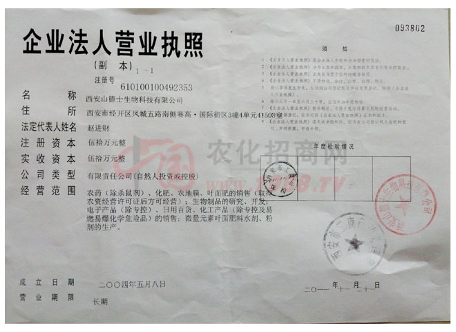 西安山德士生物科技有限公司位于西安經(jīng)濟技術開發(fā)區(qū)大興東路46號, 是以生物制品、化肥、葉面肥的開發(fā)、銷售、生產(chǎn)為一體的綜合性企業(yè)。公司擁有總資產(chǎn)1300萬元,年銷售額8000萬元。占地面積6400平方米,職工人數(shù)62人,其中各類技術人員17人。技術力量雄厚,擁有肥料、葉面肥、生物酶制品,四條國內(nèi)先進的現(xiàn)代化生產(chǎn)線,生產(chǎn)工藝先進,并通過省級三級質(zhì)量體系認證,檢驗設備先進,質(zhì)檢部配有高效液相色譜儀、高效氣相色譜儀、721分光度計、原子分析儀等先進檢測設備,質(zhì)檢人員5名,可、快速進行產(chǎn)品質(zhì)量檢測和控制分析。