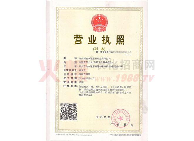 證書名稱:營業(yè)執(zhí)照 發(fā)證機(jī)構(gòu):鄭州市管城區(qū)市場監(jiān)督管理局