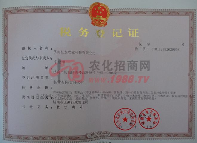 證書(shū)名稱:稅務(wù)登記證 發(fā)證機(jī)構(gòu):山東省濟(jì)南市國(guó)家稅務(wù)局 濟(jì)南市地方稅務(wù)局