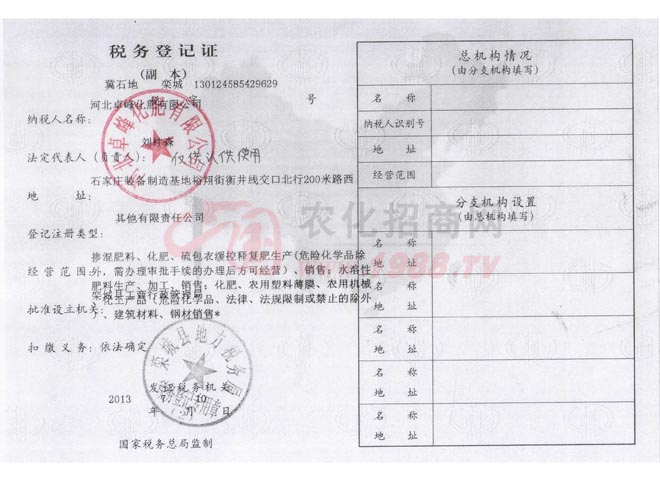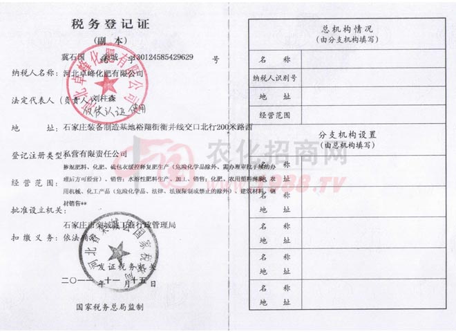 • 稅務登記證稅務登記證