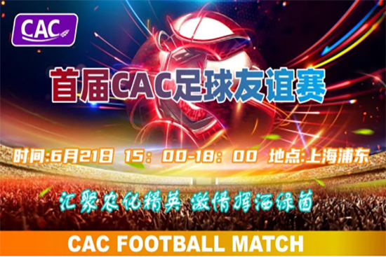 為了讓大家在參會(huì)之余放松身心,鍛煉身體,享受足球帶來(lái)的獨(dú)特魅力,主辦方將于6月21日(展會(huì)前一天)在魔都上!肿闱蚬珗@舉辦首屆CAC足球友誼賽。